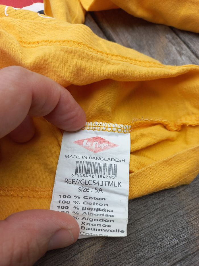 T-shirt Lee Cooper en taille 5 ans, couleur jaune, manches longues. En très bon état