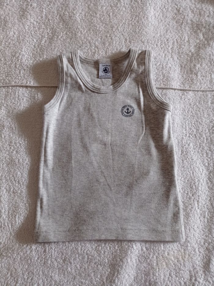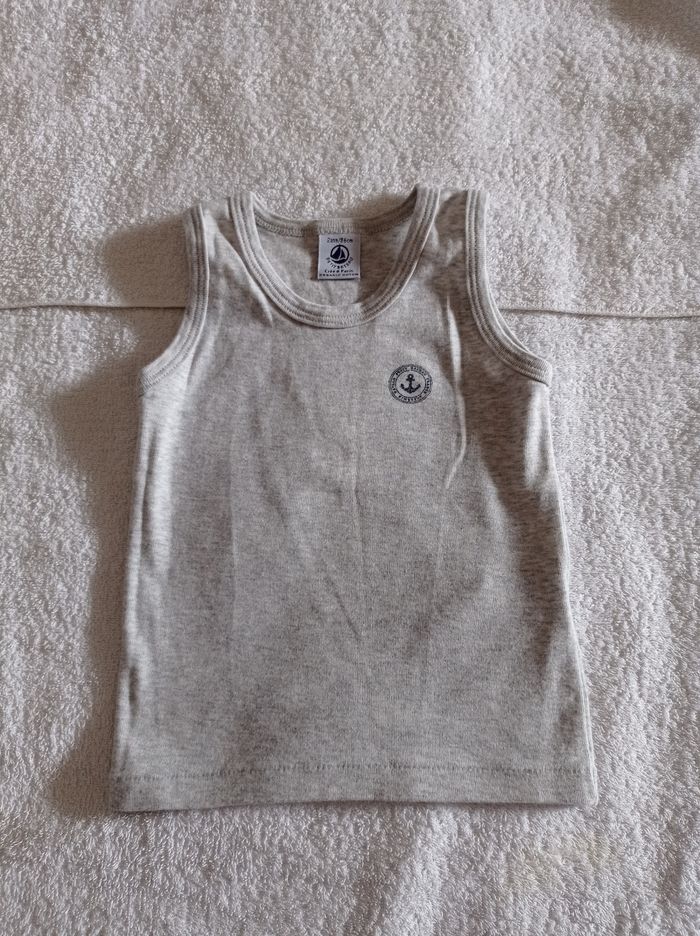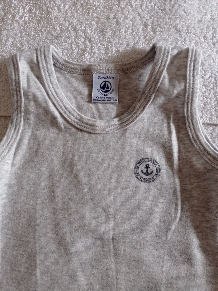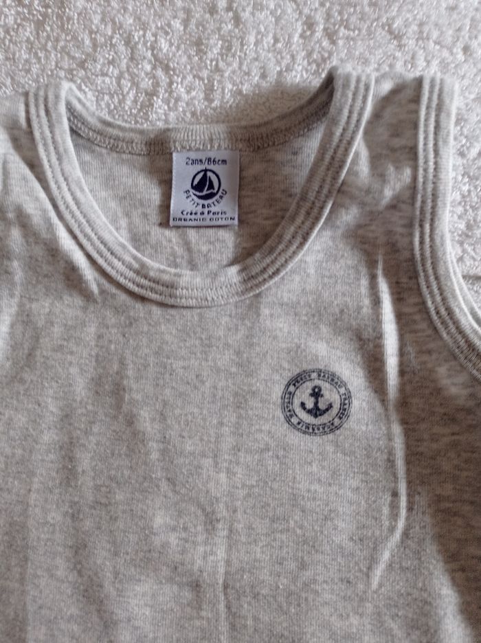 Petit Marcel sans manche pur coton agréable pour l'été taille 2 ans couleur gris marque Petit bateau voir photos