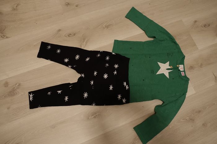 Ensemble Zara Baby Boy 18/24 mois 92 haut manches longues vert étoile Pantalon noir