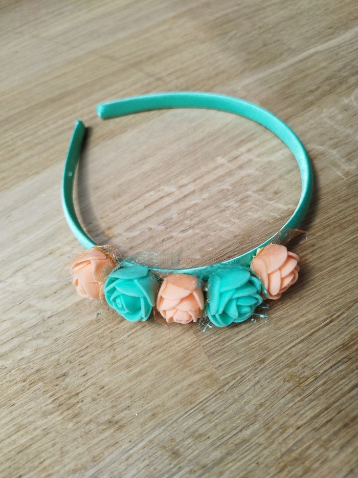 Serre tête fleurs artificielles vertes menthe et oranges jamais utilisé