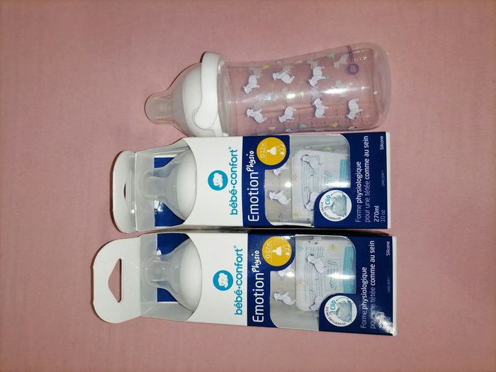 Les plus petits biberons c'est du 150ml (0-6m), pareil pour les embouts 0-6m / S.