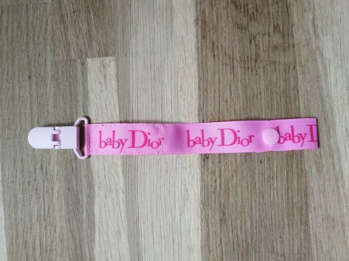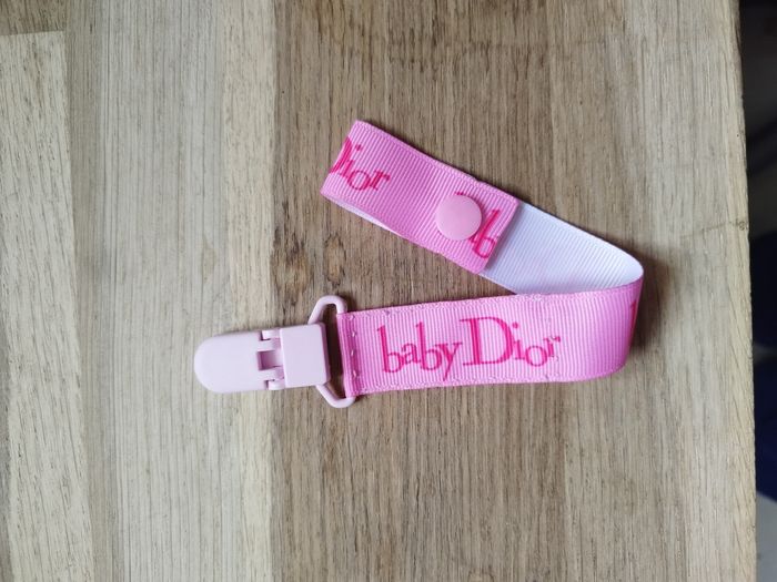 Attache tétine faisant 21cm. Elle peut passer au lave linge ou peut se mettre à trempé car il n'y a aucune partie métallique dedans. Jamais utilisée