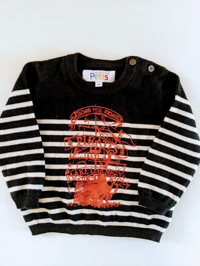 Magnifique pull rayé marinière laine La Compagnie des Petits 6 mois 68 cm neuf mixte Intemporel comme les pièces iconiques Petit Bateau 80% coton 20% laine Bleue marine et blanc Superbe qualité. Pull d'épaisseur moyenne comme le pull cachemire Mixte parfait pour fille et garçon Sérigraphie motif bateau pirate Neuf jamais porté Bonne marque française La Compagnie des Petits 6 mois 68 cm #yipin_bebe_6mois #yipin_bebe_6mois_fille #yipin_bebe_6mois_garcon #yipin_bebe_6mois_mixte