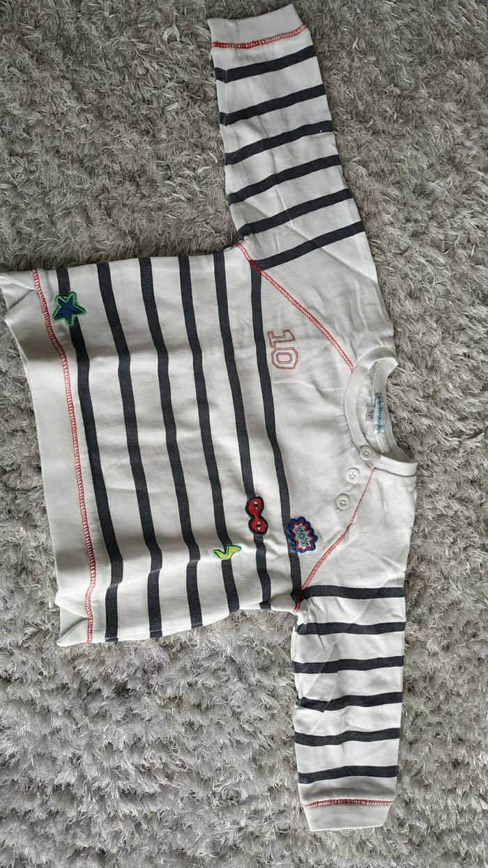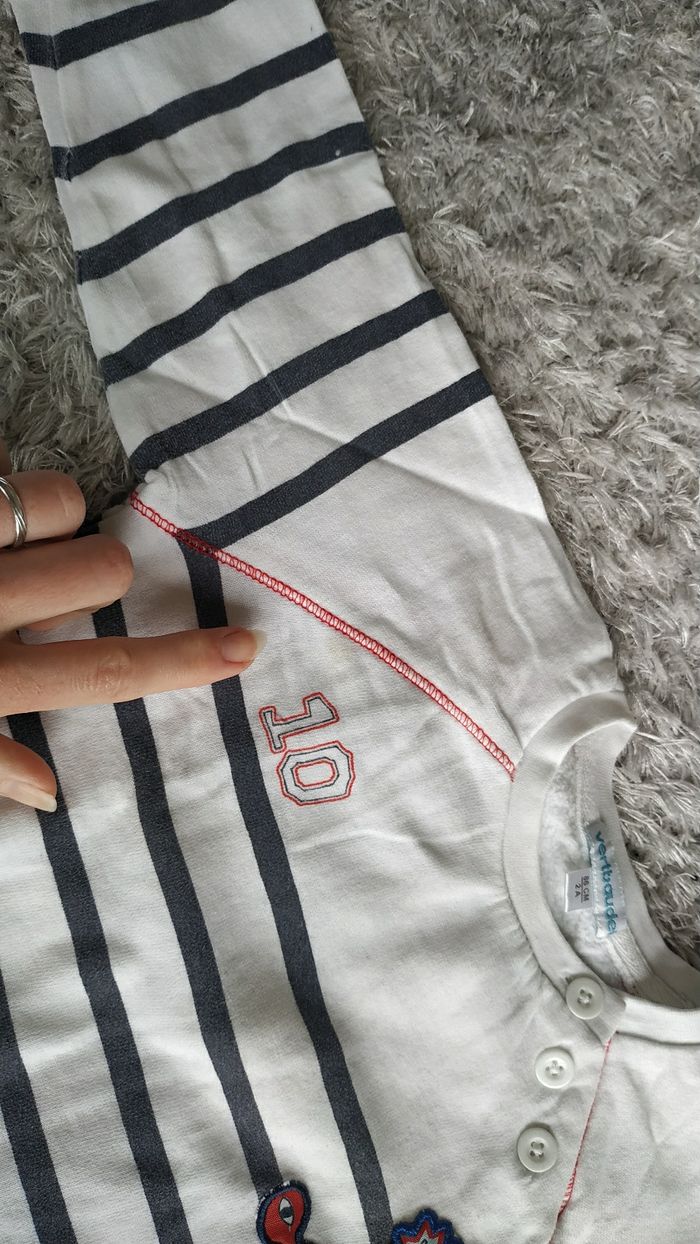 Sweat blanc rayé gris 2 ans 86 cm Vertbaudet Une petite tâche légèrement jaunie (cf photos)