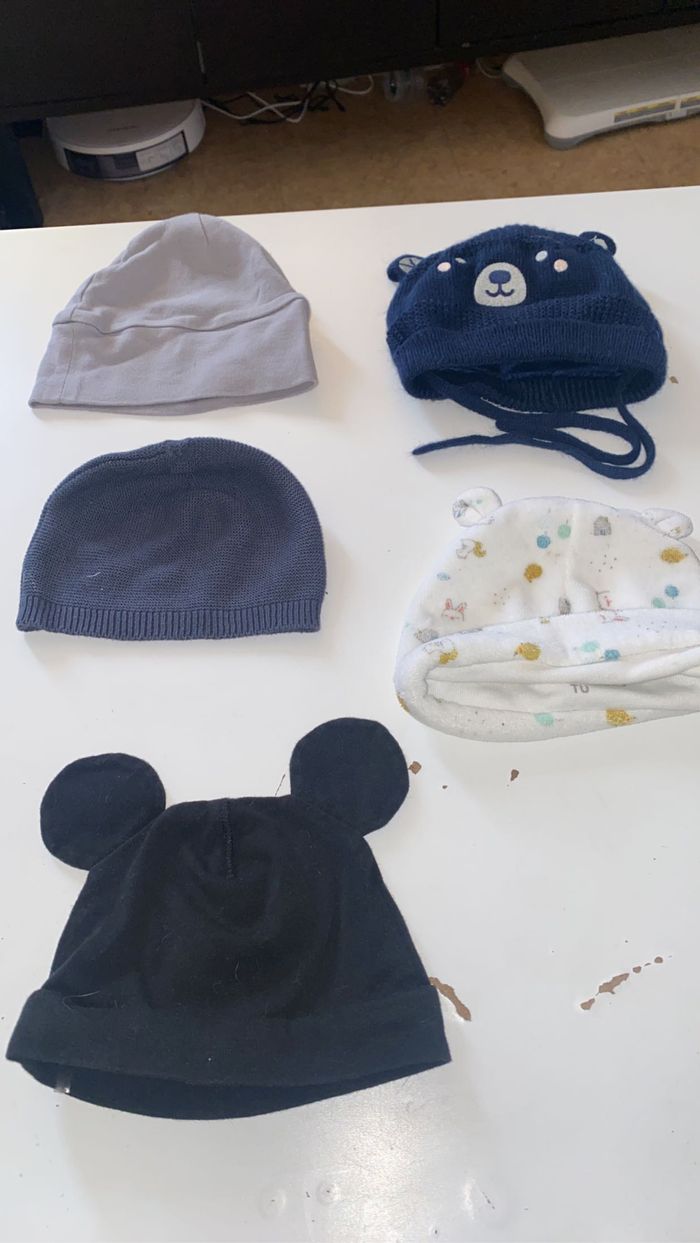 Bonjour je vend une turbulette 0-6 mois et 5 bonnet à mettre dès la naissance.