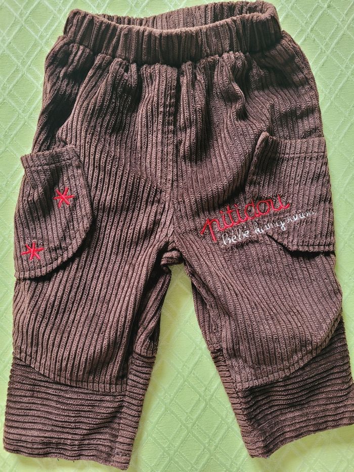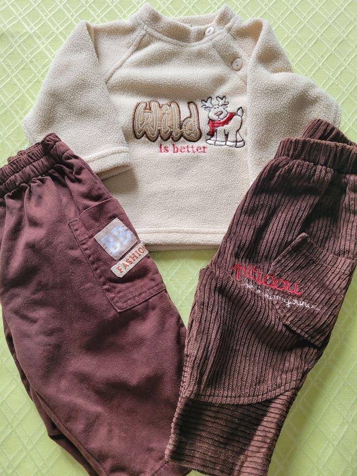 Ensemble de 2 pantalons marrons et d'un pull polaire "café au lait ". Bon état