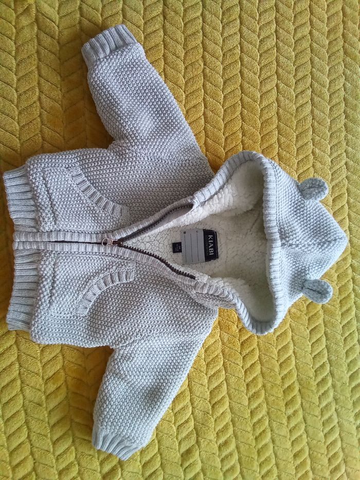 Gilet gris épais, tient bien chaud. Taille: 3 mois. Marque Kiabi. Article propre et non taché.