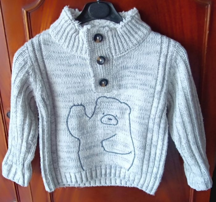 Pull avec fourrure autour du col et dessin d'ours en très bon état de la marque Tex Baby pour bébé taille 23 mois. #enzo33pullgarçon23mois