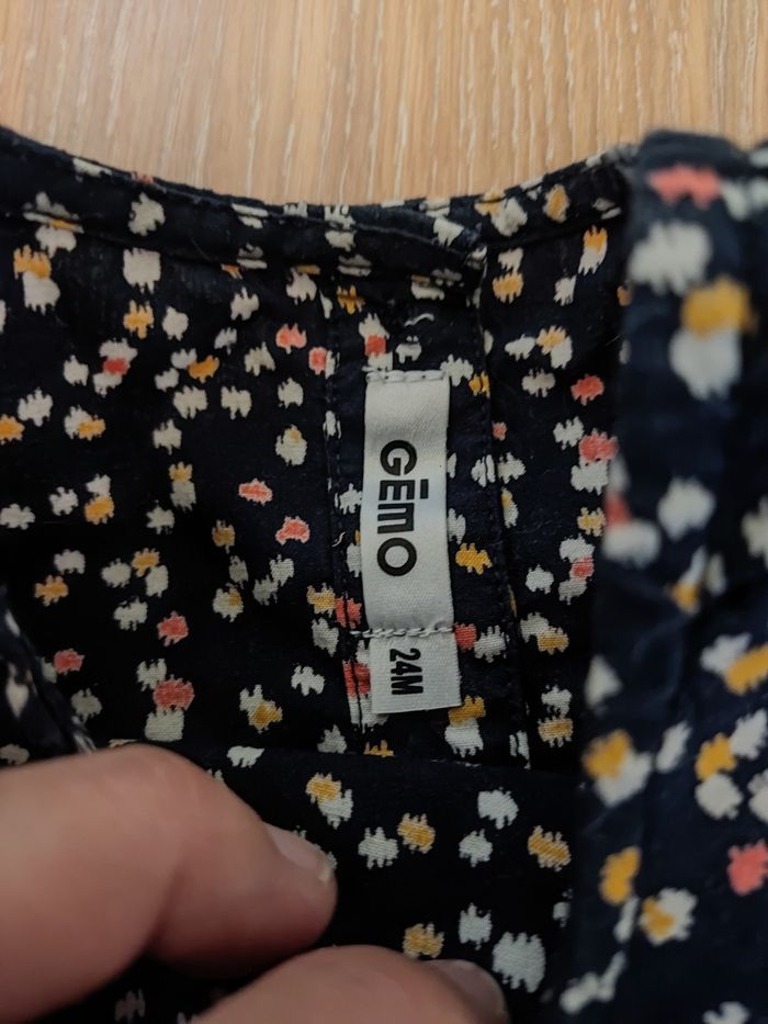 Robe en excellent état, comme neuve, très peu portée. Marque Gémo. Taille 24 mois.