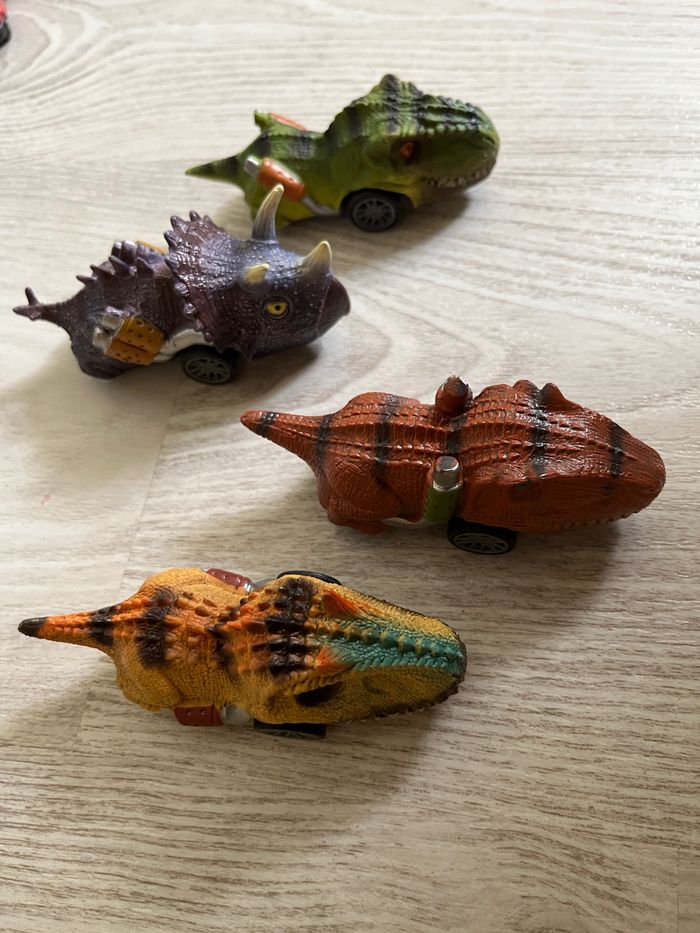 Lot de 4 voitures dinosaure a friction en parfait état comme neuf