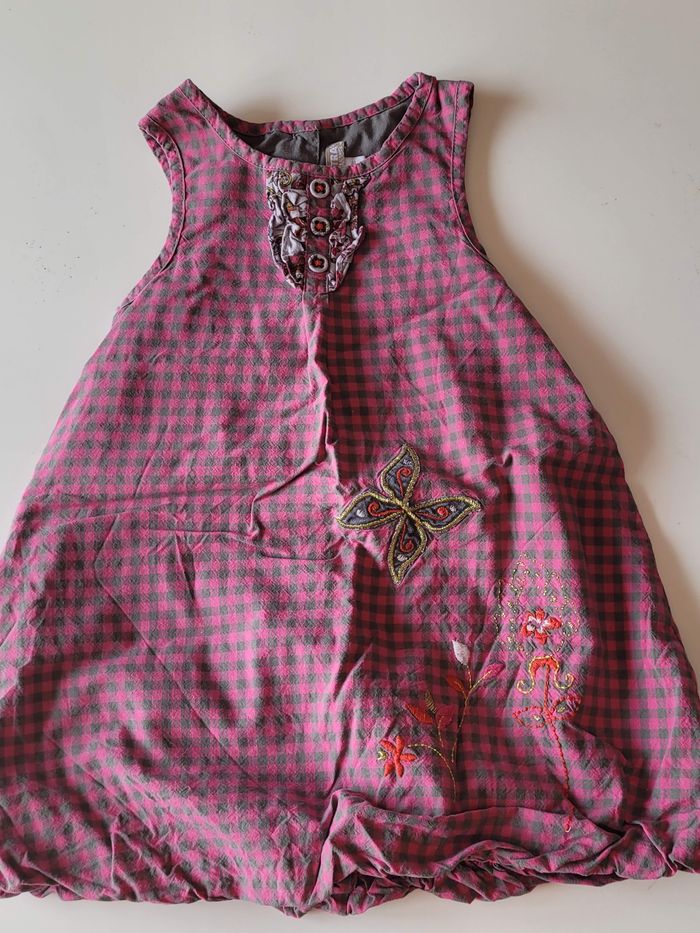 Robe sans manches Ouverture boutons dos Motif carreaux , fleurs et papillon