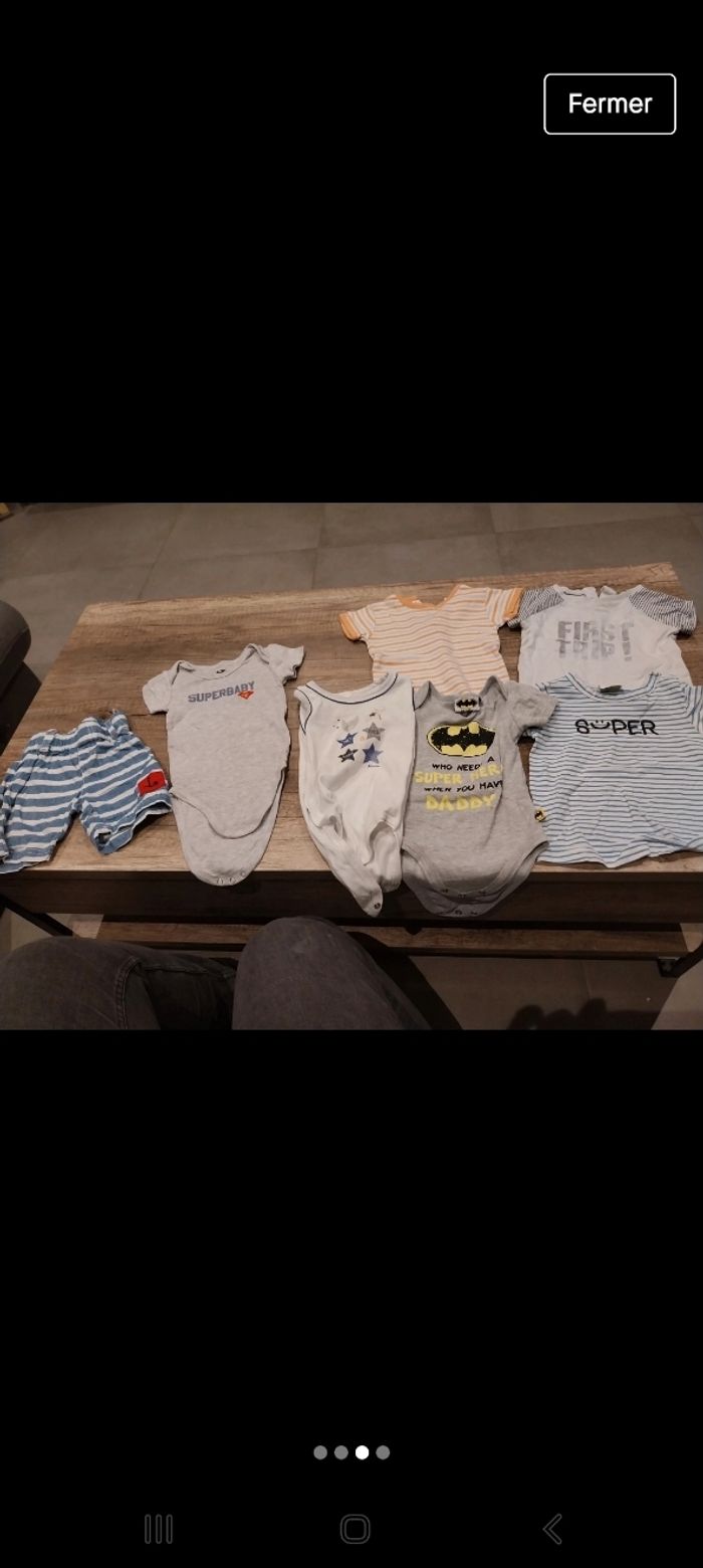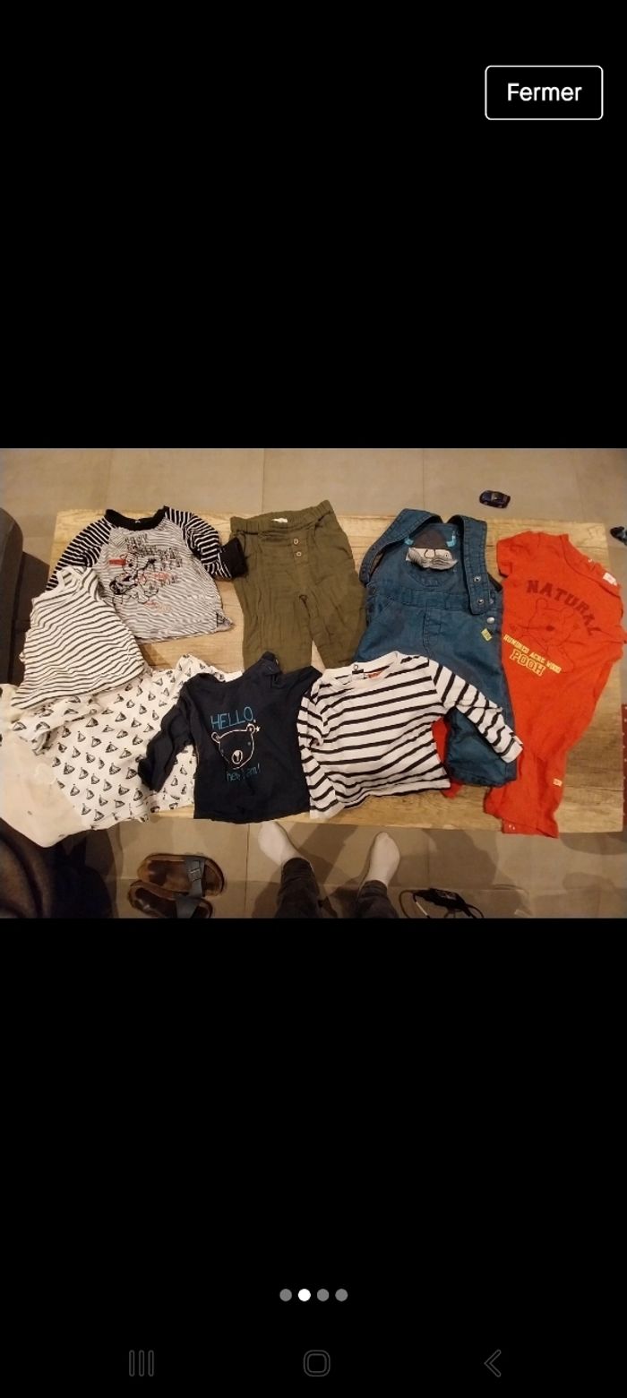 Lot mi-saison/été 9 mois garçons comprenant: 1 short 3 Tee-shirts 2 bodies manches courtes 1 bodies sans manche 1 bodie manche longue 4 Tee-shirt manches longues 1 combinaison 1 pyjama velour 1 veste de cérémonie 1 pantalon de cérémonies 1 pantalon très légers 1 salopette polaire à l'intérieur Soit au totale 17 article pour 12 euros #9moisgarcon #été #misaison #printemps #lot9moisgarçon
