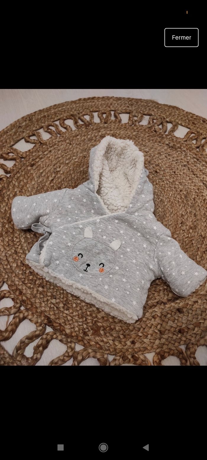 Vend manteau polaire, gris et blanc. Taille 1 mois