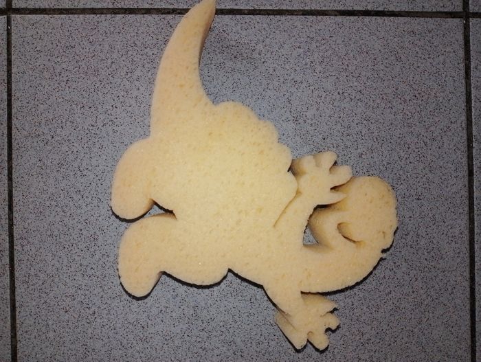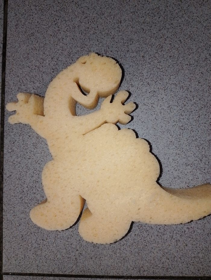 Éponge de lavage enfant dinosaure Hauteur 15,5cm Largeur 20cm Juste un petit accro voir photo.
