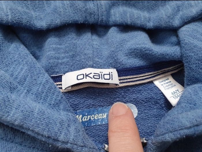 Gilet zippé à capuche bleu Okaïdi 4 ans Il reste l'étiquette thermocollante avec le nom de mon fils Très bon état #flagadajones4ans #gilet4ans #giletzippe4ans #okaidi4ans #giletokaidi4ans C1N