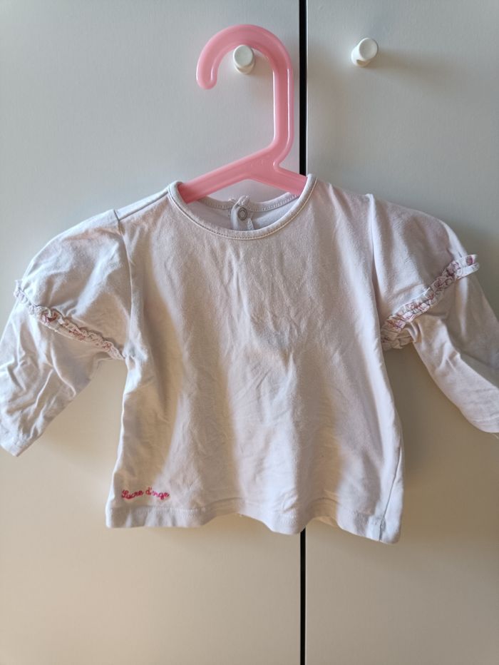 Je vends un haut pour bébé fille, fermeture à pression dans le dos. Petit détail sur les manches 🌺Très bon état 🌺Taille 6 mois 🌺Marque Sucre d'orge
