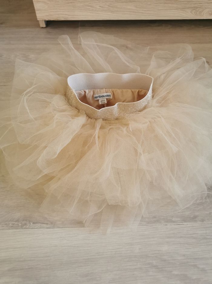 Jupe en tulle doré de chez verbaudet en parfait état idéal pour faire de belle photo avec bébé.