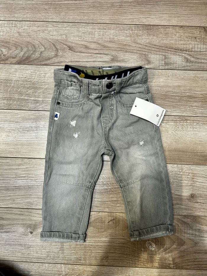 Joli jean gris avec effet caleçon pour garçon en 12 mois neuf avec étiquette de la marque Lulu Castagnette