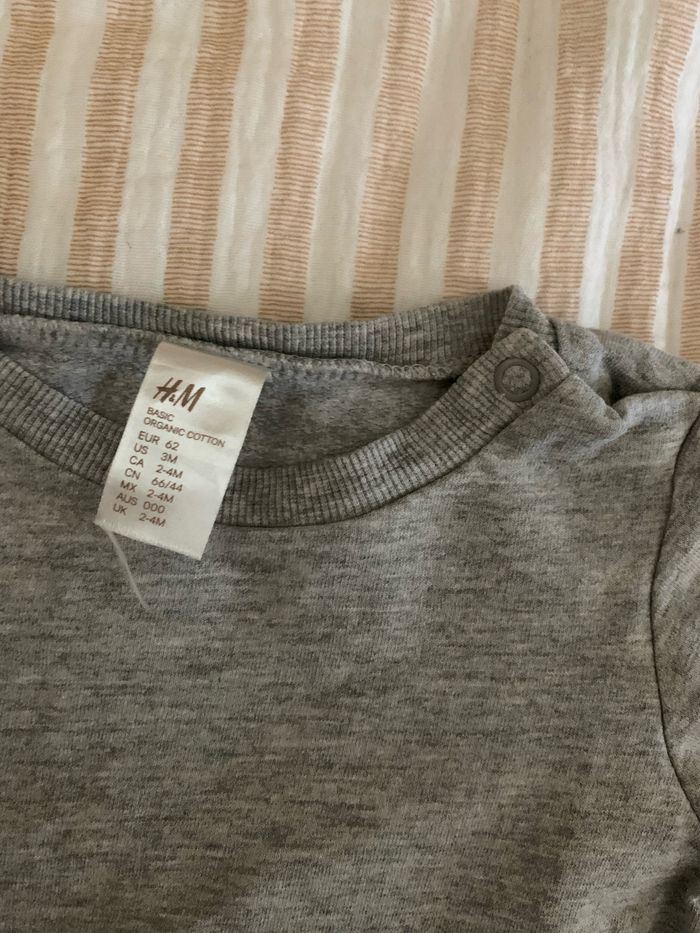 Pull + pantalon de jogging gris H&M en très bon état Fermeture par bouton pression Taille 2-4 mois : 62cm RÉDUCTION SUR LES LOTS