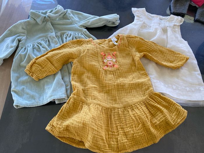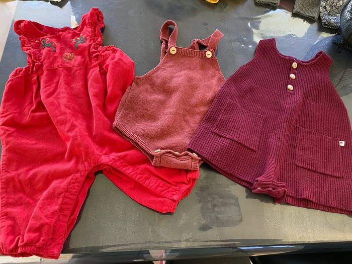 Lot de vêtements en 6 mois Le lot comprend: - 9 pantalons/legging (marques: DU PAREIL AU MÊME, KIABI, ORCHESTRA, TERRE DE MARIN, IKKS) - 3 robes (ORCHESTRA, SERGENT MAJOR) - 2 teeshirt à manches longues (IKKS, OBAIBI) - 3 combi (ORCHESTRA, KIABI)