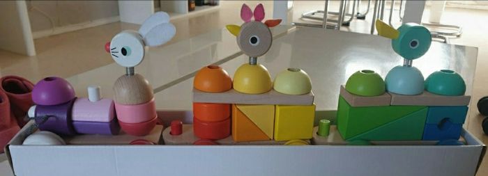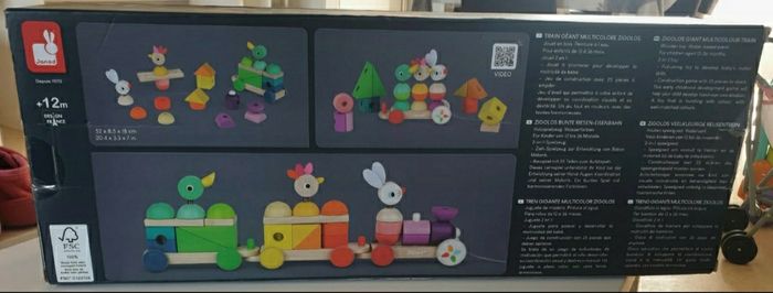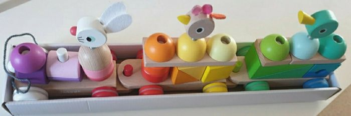 Jouet en bois, peinture à l'eau. Pour enfant de 12 à 36 mois. Jouet 2 en 1 : - Jouet à promener pour développer la motricité de bébé - Jeu de construction avec 25 pièces à empiler Jeu d'éveil qui permettra à votre enfant de développer sa coordination visuelle et sa dextérité. Un jeu tout en couleur, avec des teintes harmonieuses.