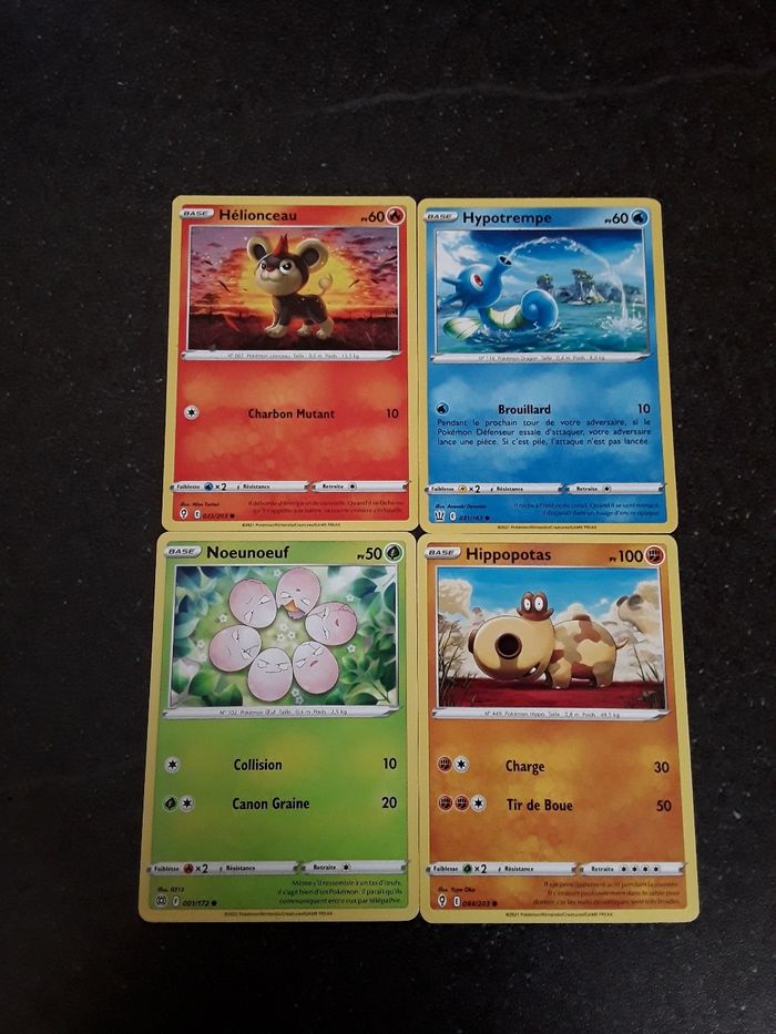 Hélionceau + Hypotrempe + Noeunoeuf + Hippopotas lot de 4 cartes Pokémon neuves