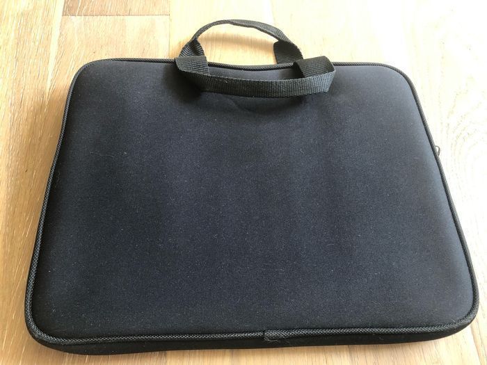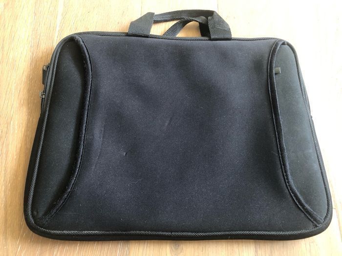 Sacoche noire pour ordinateur portable jusqu'à 15 pouces 2 poignées pour la transporter facilement. Se ferme avec une fermeture éclair 2 poches profondes et séparées sur la partie avant. Elles se ferment aussi avec des fermetures éclairs. Dimensions : 34cm x 26cm x 3cm Pensez à regarder les autres articles de mon dressing pour faire des lots ;) Si vous avez des questions, n'hésitez pas..
