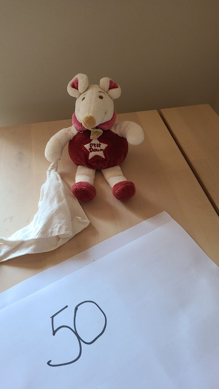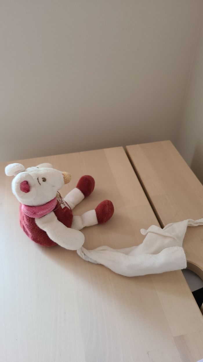 Doudou souris bordeaux et blanc Franboisine Doudou et compagnie Moins de 16 cm