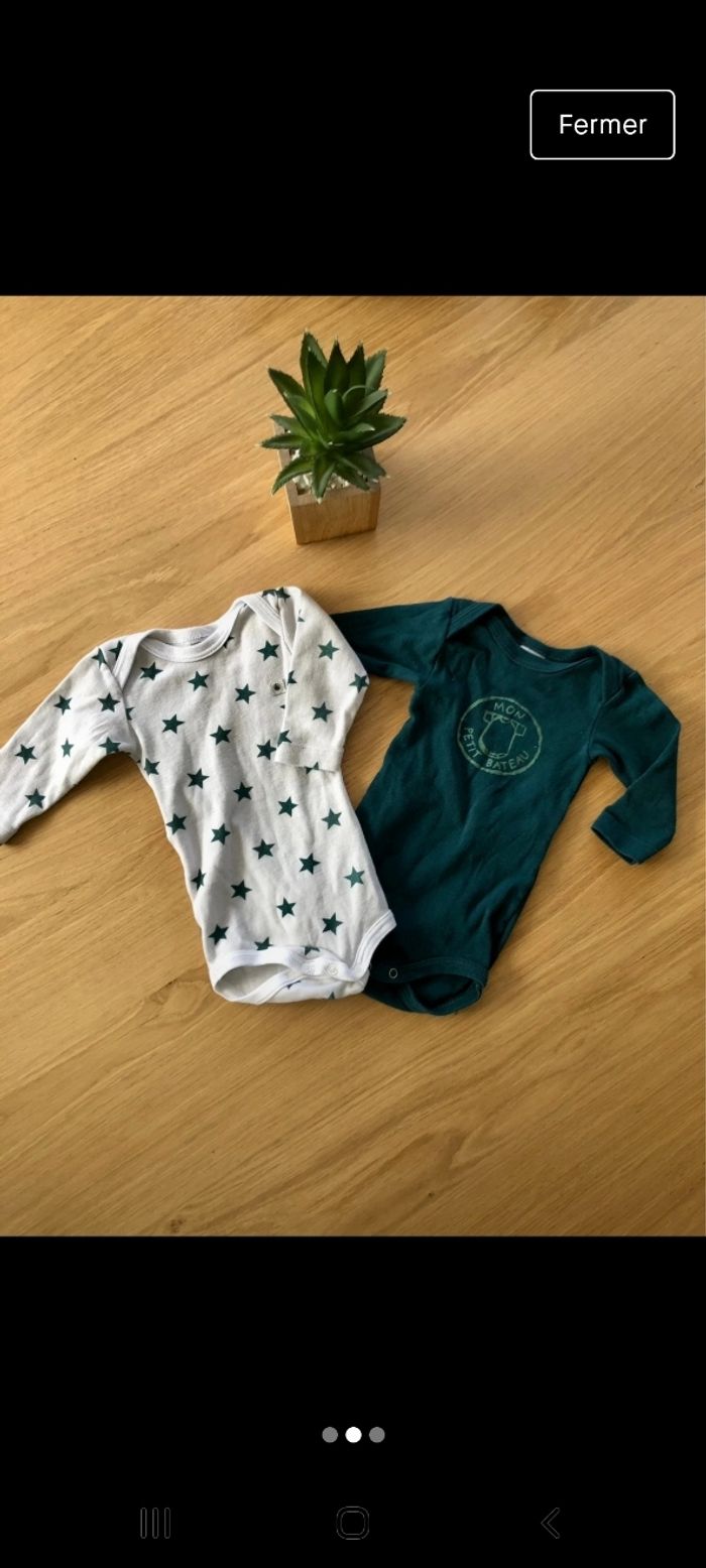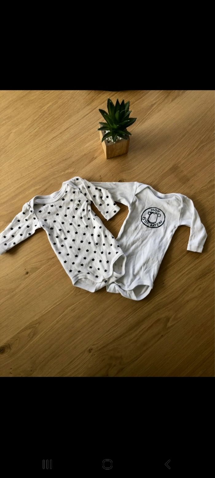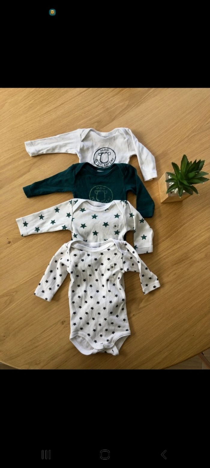 Lot de 4 bodies Petit Bateau taille 3 mois. Très bon état. Très peu porté.