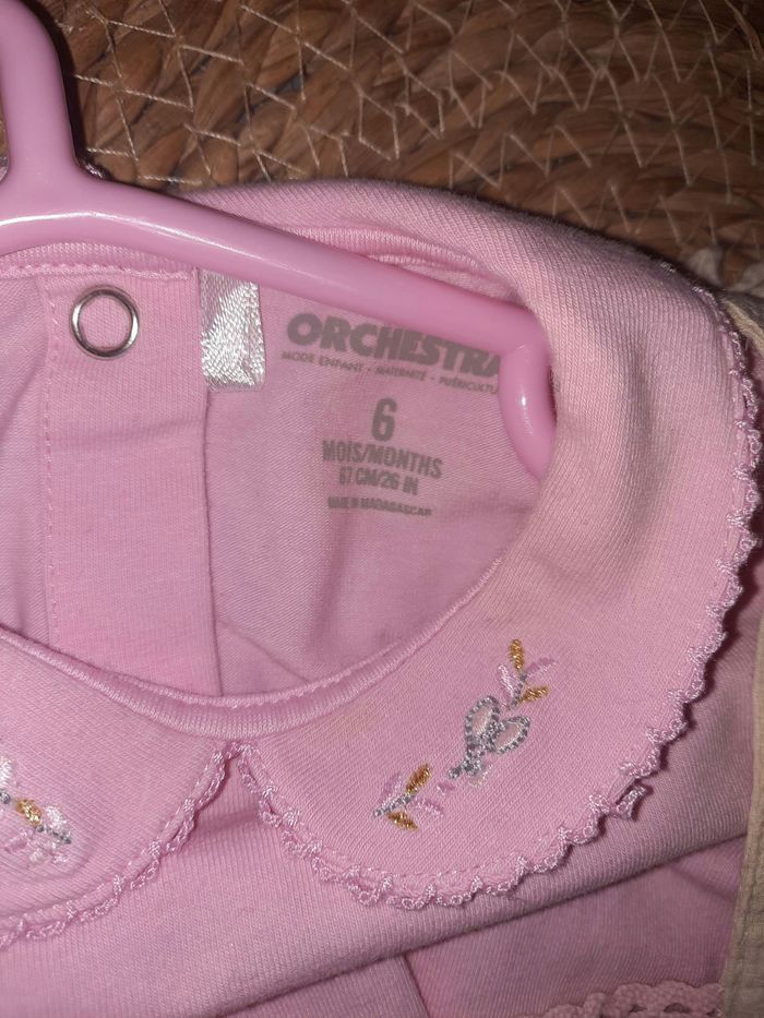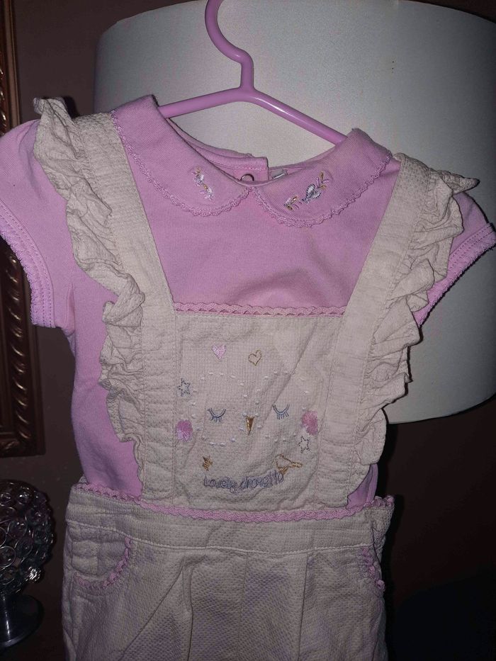 Très belle ensemble tchirt +salopette en parfait ètat. Taille 6 mois.
