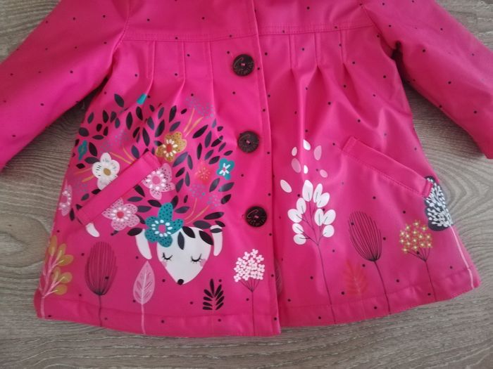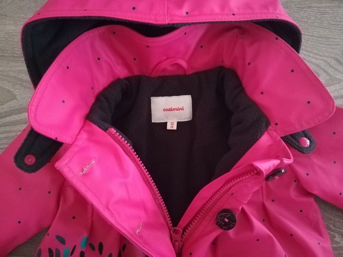 Etat proche du neuf. 100% polyester, doublure intérieure texture polaire toute douce. Capuche doublée polaire, zip et 2 poches sur les côtés.