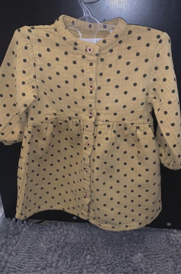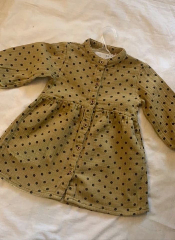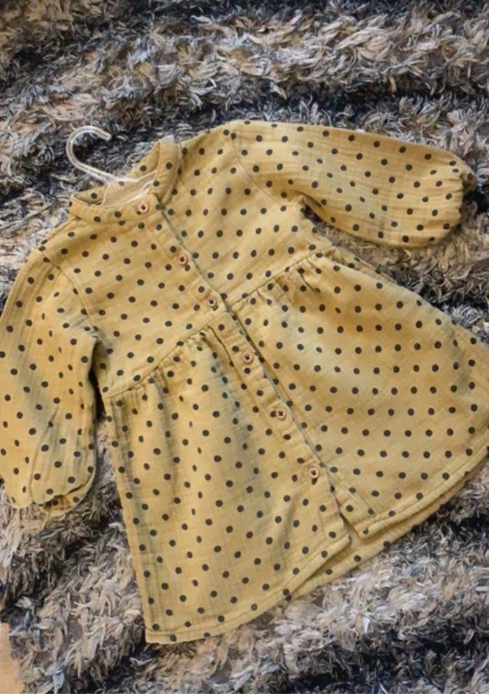 Très jolie robe pour votre petite princesse 100% coton Taille : 12/18 mois (86cm) Couleur : moutarde à pois Marque : Zara