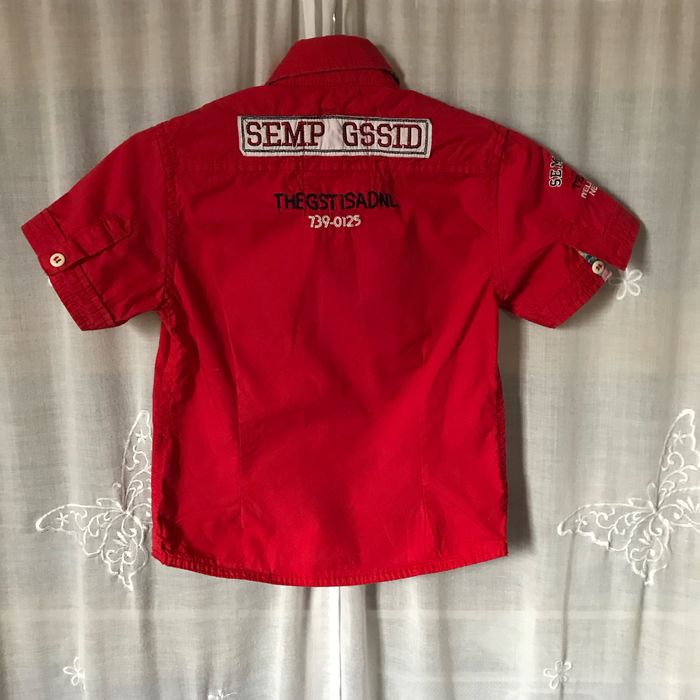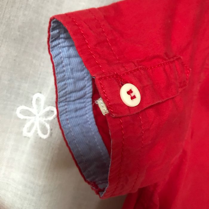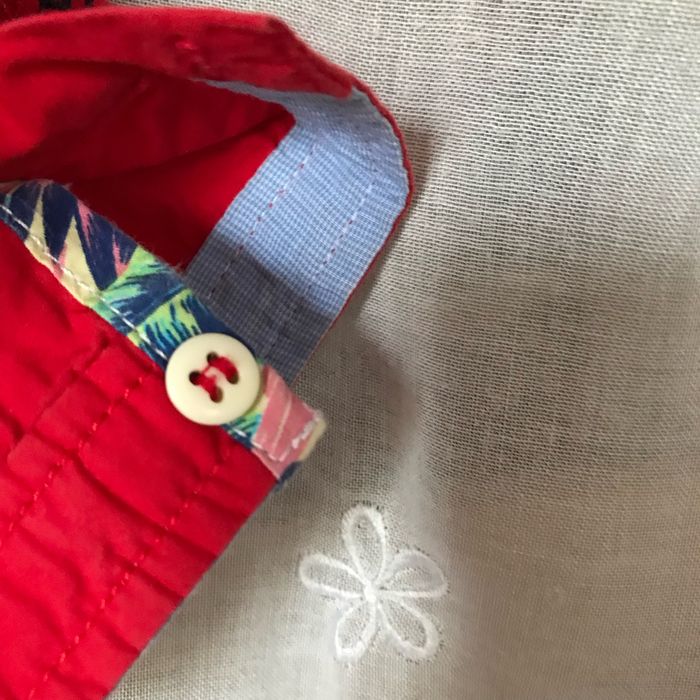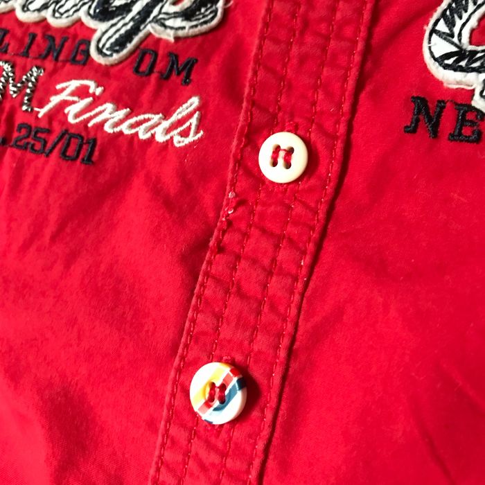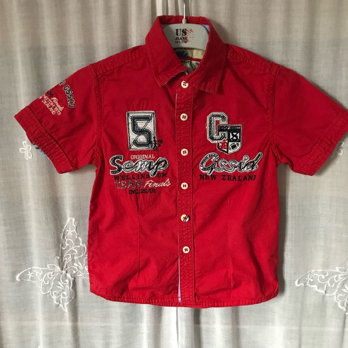 Chemise manches courtes rouge et bleu Denim Écussons New Zélande rugby Tour Eiffel Taille 4 ans Parfait état