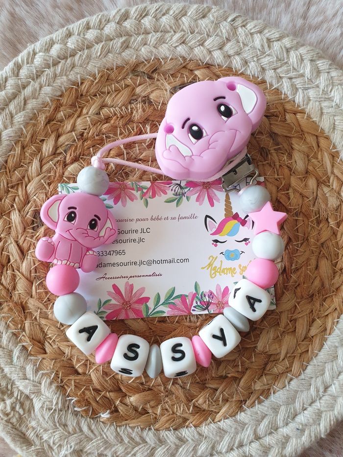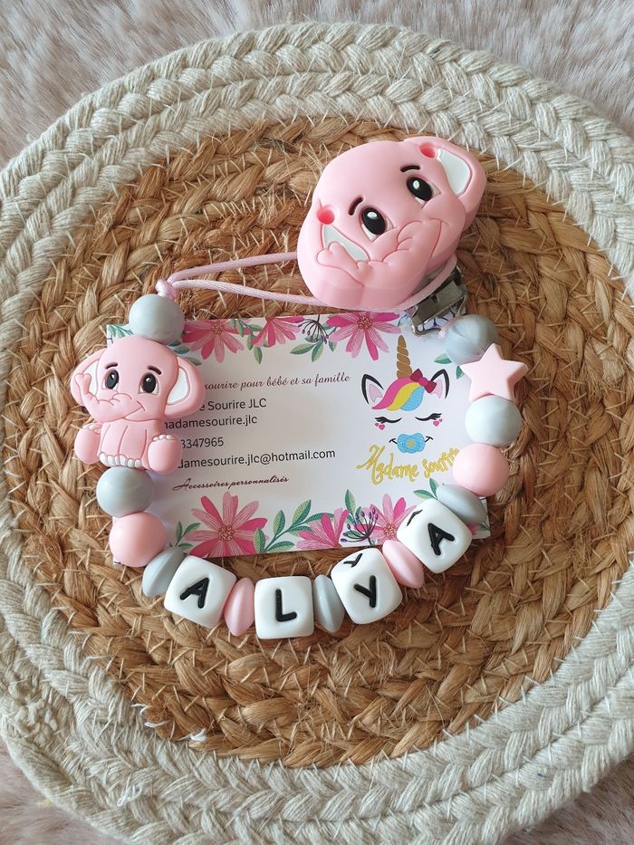 Attache tétine Elephant 100% personnalisable en silicone alimentaire et/ou bois naturel. Large choix de perles, le style, les couleurs, nous personnalisons ensemble main dans la main pour créer votre accessoire idéal. Contactez-moi par message pour personnaliser ou tout renseignement.