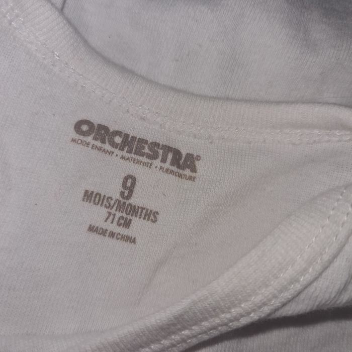 Lot de 3 bodys Manches longues Orchestra 9 mois 2 en très bon état Je donne le 3eme car petite tâche voir photo
