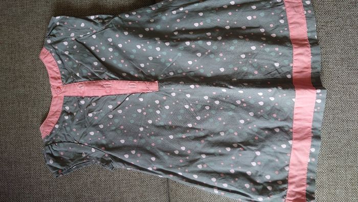 Robe motif gouttes sur fond taupe. Taille 6 mois.
