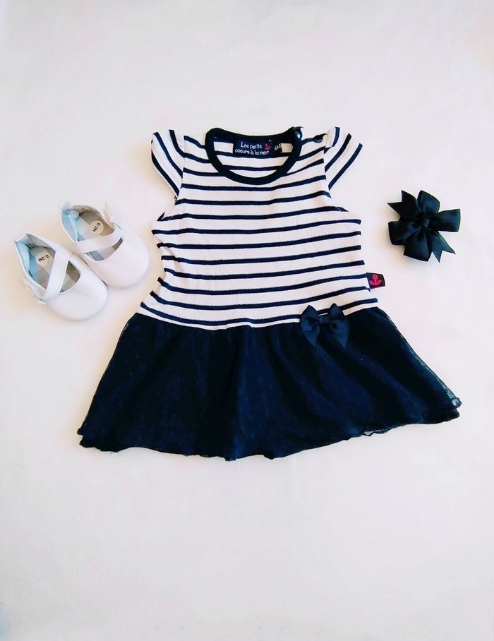 Manches courtes A rayures avec Petit noeud en relief Tutu couleur plutôt bleu marine