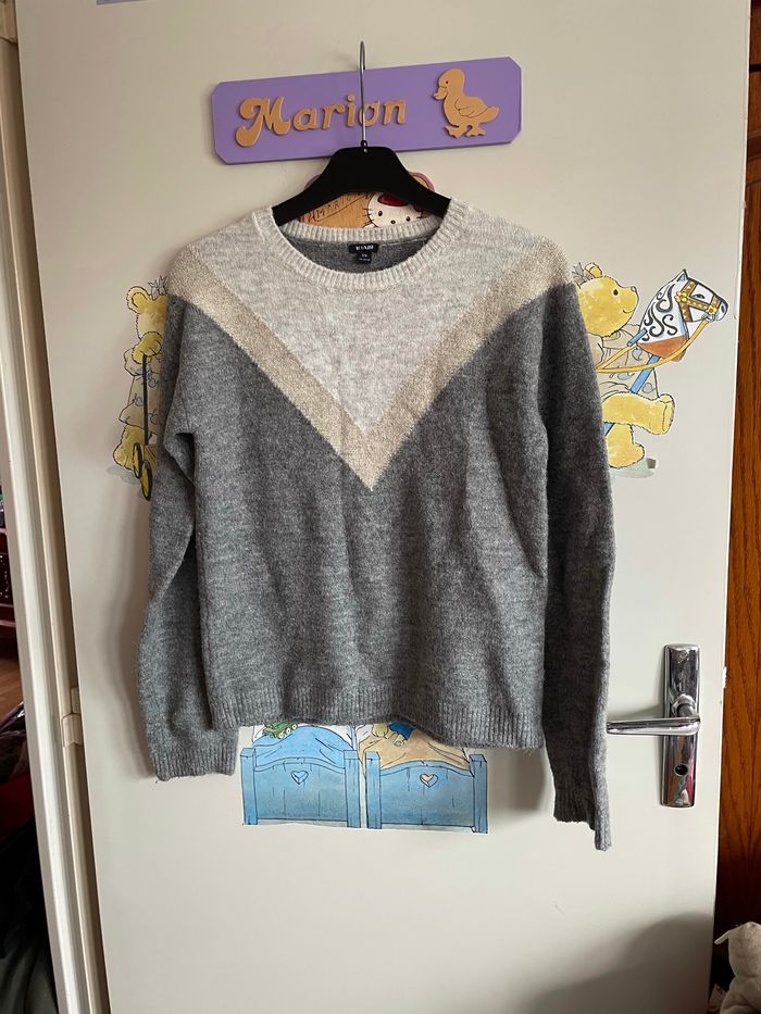Pull gris et doré, taille 12 ans, marque Kiabi