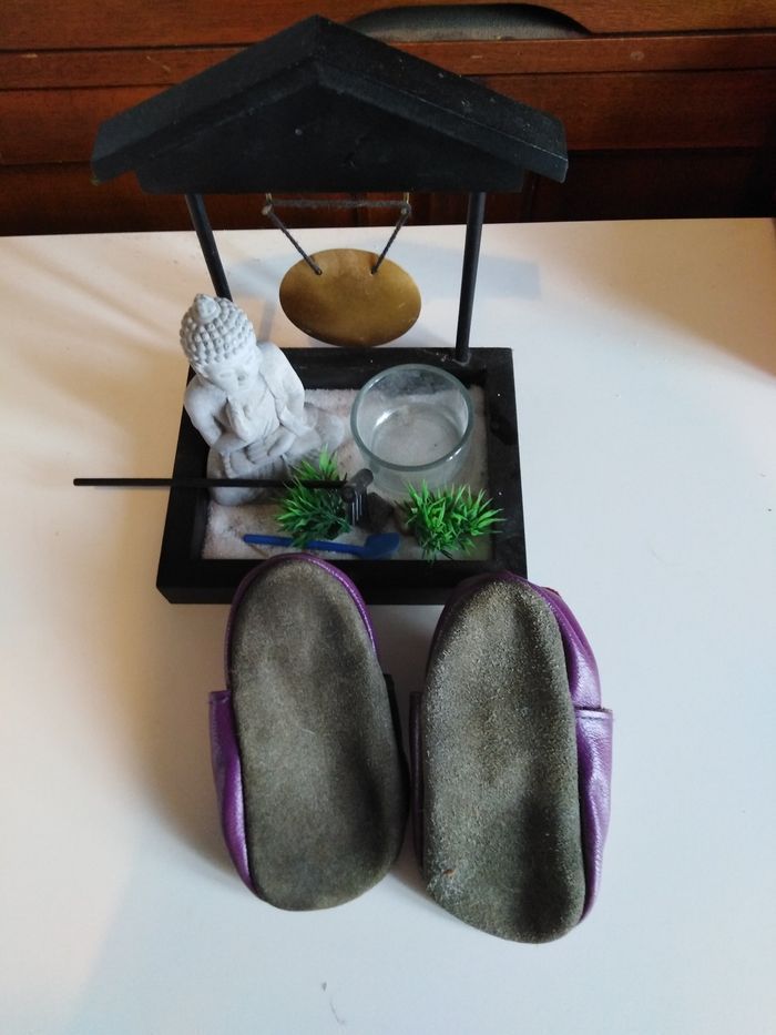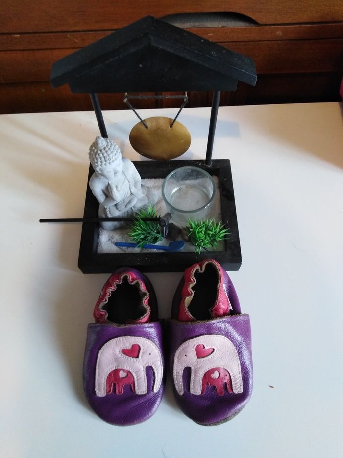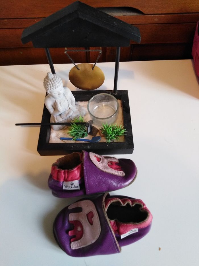 Paire de chaussons en cuir motif éléphant à enfiler, qq traces d'utilisation comme pliures. Bon etat Beaucoup D'autres chaussures, chaussons fille ds mon dressing et réductions activées