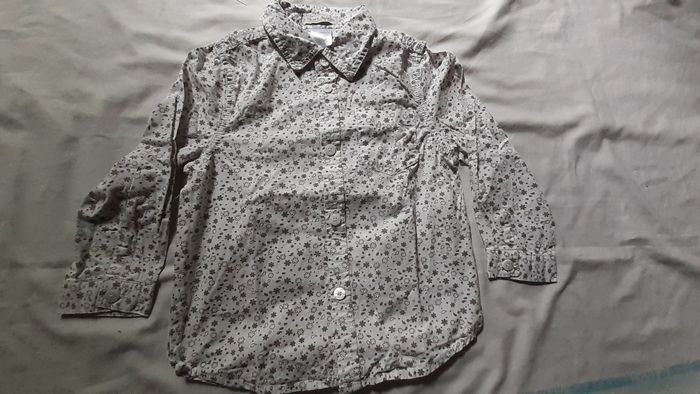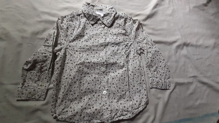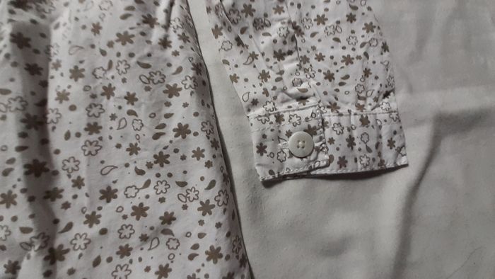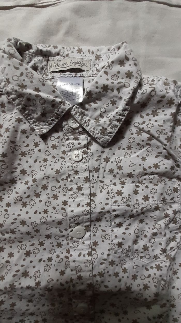 Chemise blanche à fleurs marrons manches longues 3 ans