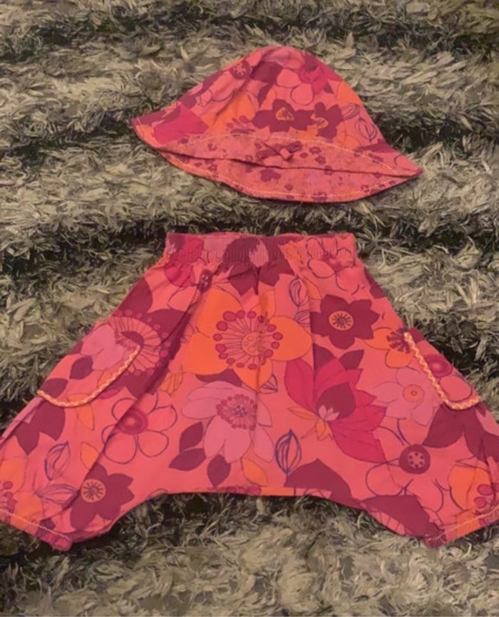 Ensemble bébé fille (saroual et bob) Taille : 1 mois (54cm) Couleur : rose /fushia Marque : Kitchoun