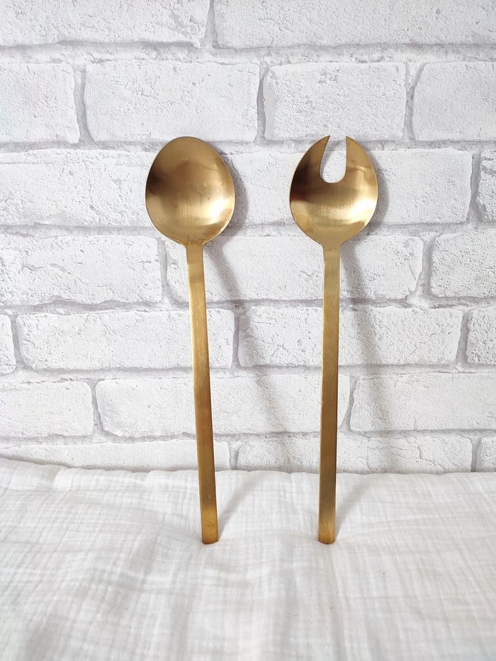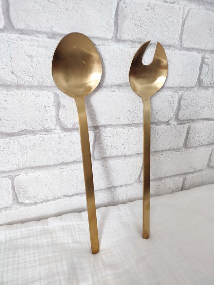 Lot de 2 grand couvert de service doré, idéal salade. Remise activée sur les lots