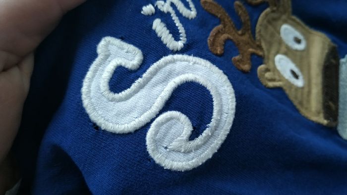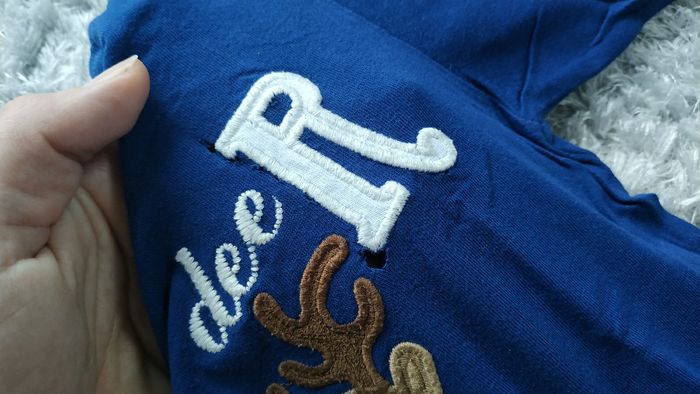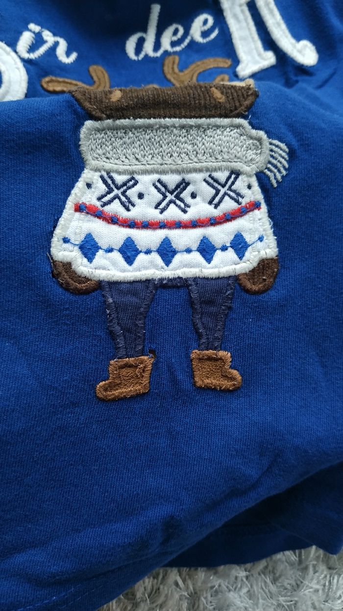 T-shirt bleu manches longues Mayoral Baby 18 mois Petits trous autour inscription,/dessins, cf photos