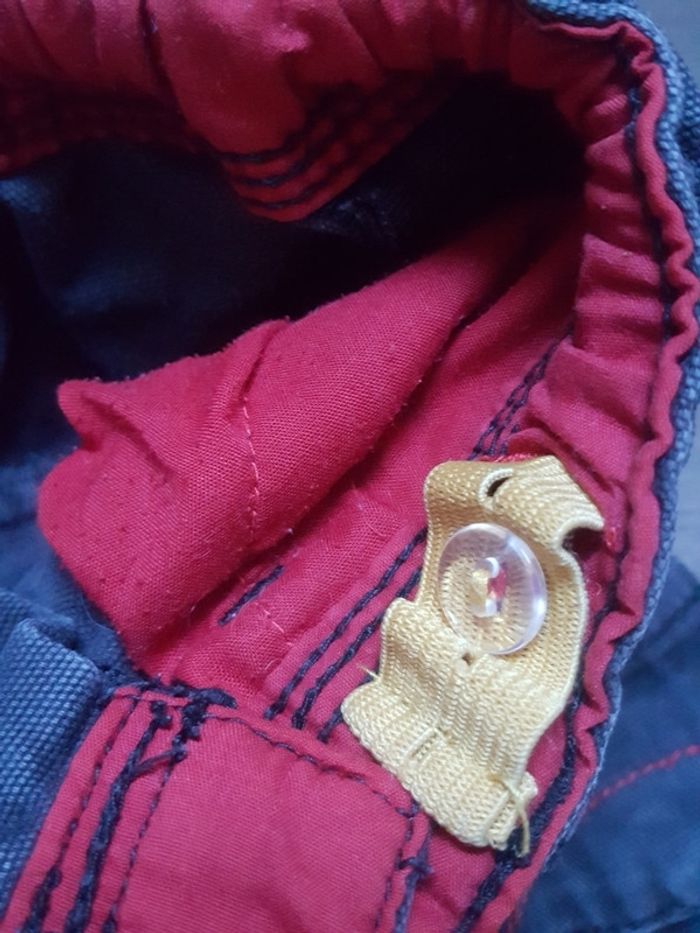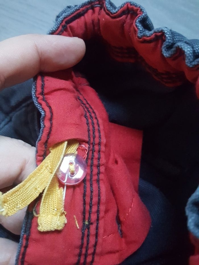 Pantalon en jeans taille 92. Bien porté mais encore en bon état. Attention l'élastique à la taille est cassée d'un côté ( voir photo ).