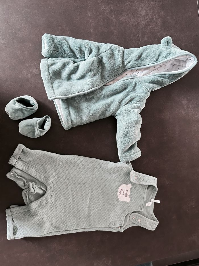 Ensemble bleu hiver 6 mois. Veste plus chausson plus combinaison