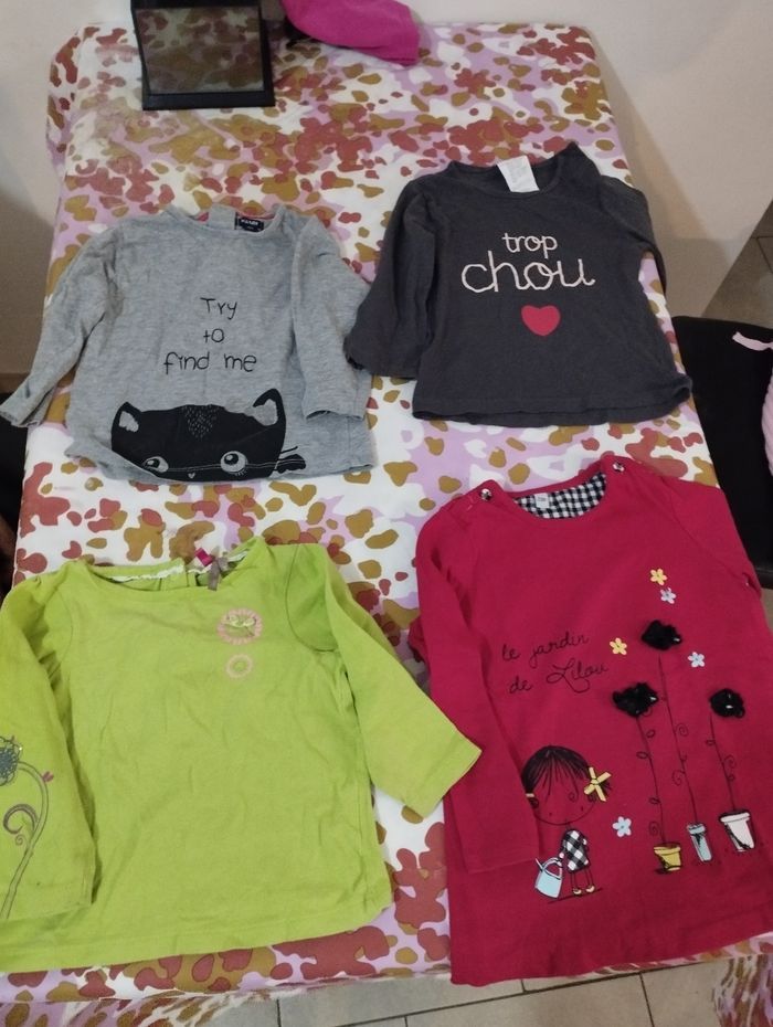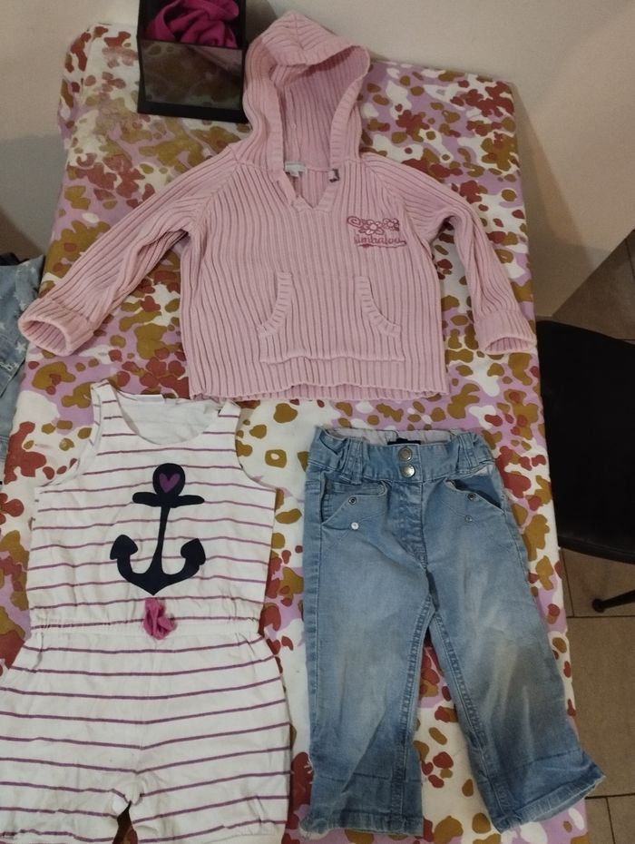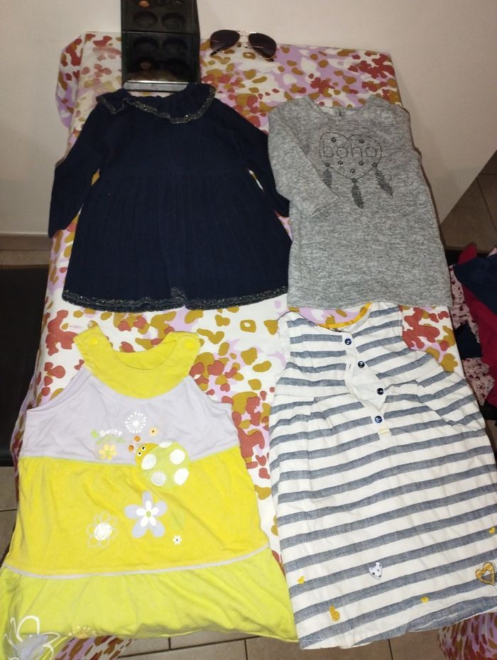Lot vêtements fille 4 robes 4 leggings 1 pull rose 5 haut manches courtes 4 manches longues 1 combi short 1 jeans