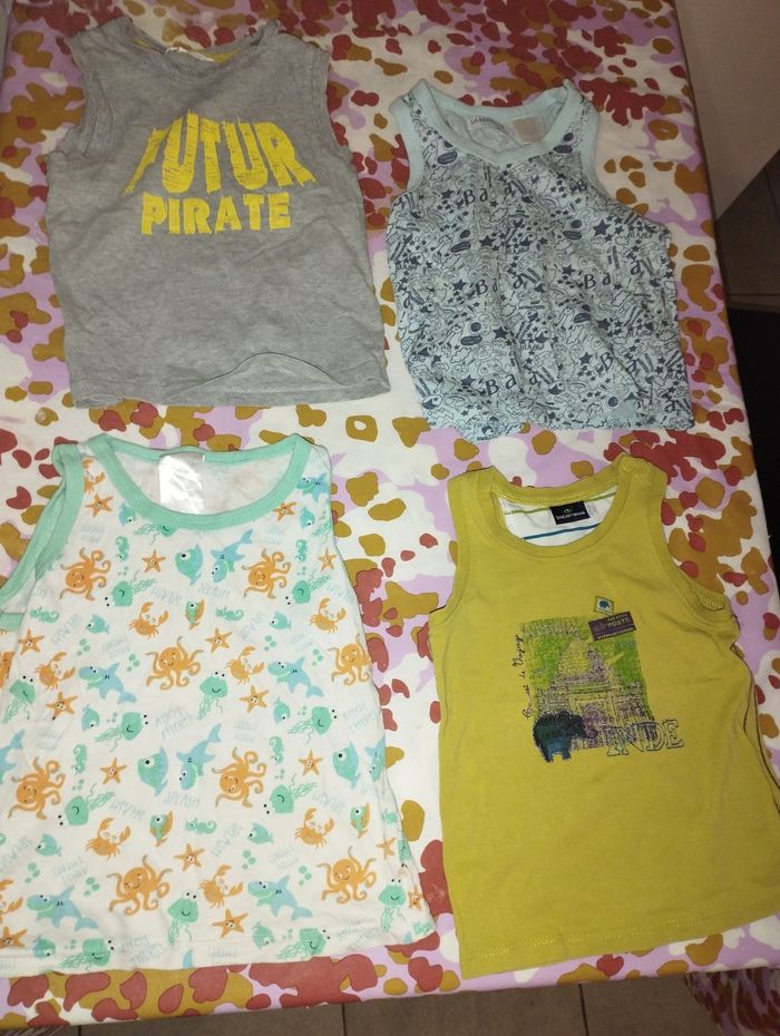 Lot garçon 24 mois . 4 débardeurs 1 chemise Mickey 1 pull 1 veste .bon état général
