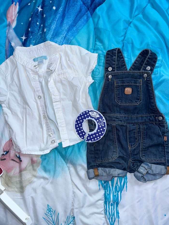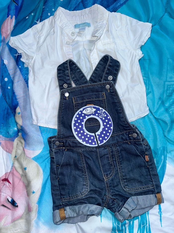 Ensemble deux pièces 3 mois comme neuf, comprend salopette et chemise #3moiskay57070 #obaibi #obaïbigarcon #ensemblebebe #ensembleobaibi #été3mois