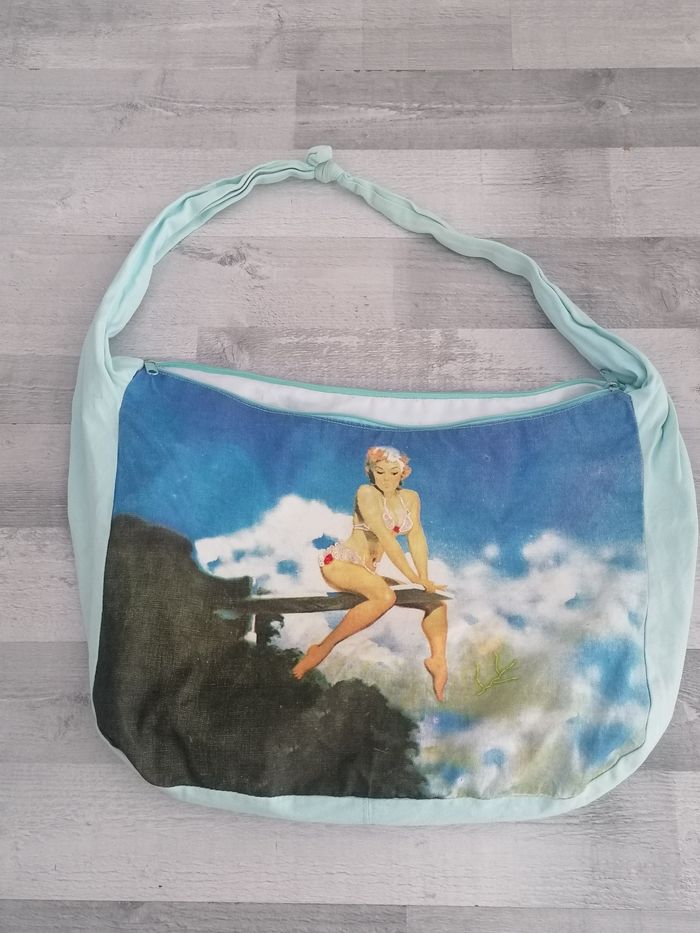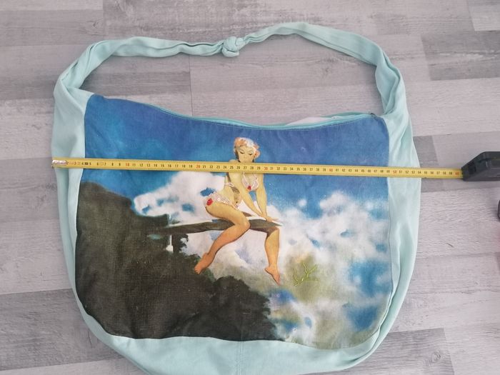 Sac fourre tout Bleu clair Perles brodé Acheter en magasin maroquinerie Quelques tâches