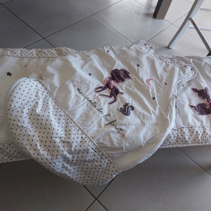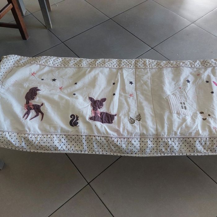 Tour de lit + turbulette Bon état, manque juste 2 attaches sur le tour de lit (facile à remplacer )